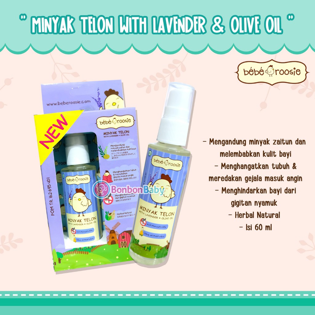 Bebe Roosie Minyak Telon with Lavende,Bugs Repellent 60ML Krim Anti Gigitan Nyamuk Bayi Penghilang Bekas Gigitan Nyamuk Bahan Alami/ Cream / Pojokbelanja / BISA BAYAR DI TEMPAT(COD)
