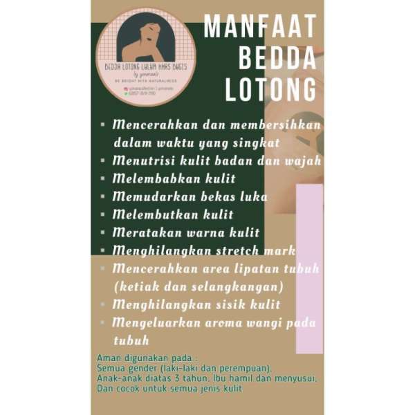Kenapa bedda lotong (bedak hitam)ini berbeda dengan bedda lotong lainnya ? Karena lulur hitam ini sama sekali tidak mengandung pengawet dan hanya bertahan 2-3 minggu apabila tidak dimasukkan kedalam lemari es jika disimpan dilemari es bertahan hingga 1-2 bulan. Makanya lulur hitam ini banyak digemari kalangan tua dan muda juga aman sekali buat ibu hamil dan menyusui, karena mereka tidak perlu khawatir untuk memakai bedak ini..