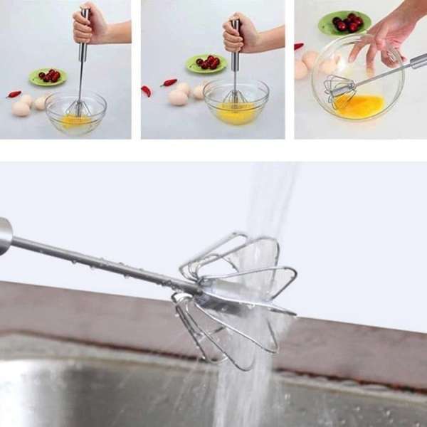 Cukup ditekan kebawah seperti menguleni adonan, maka mixer ini akan bekerja secepat seperti mixer listrik.