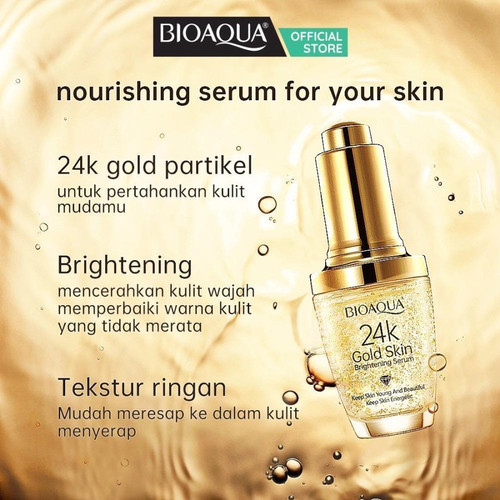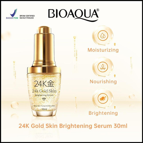 BIOAQUA 24K GOLD ESSENCE FACE SERUM GOLD ANTI AGING SKIN CHANEL 24KBioaqua Facial Serum with 24K gold content is a product that is very suitable for your facial skin rejuvenation treatment. Able to help remove eye bags, wrinkles, prevent premature aging, restore the elasticity of your facial skin. Well-maintained skinBy using this product, getting healthy and well-groomed skin is no longer a mere dream.This product can help you to get rid of wrinkles on the face, remove eye bags, restore the elasticity of your skin.You will get healthy, well-maintained and wrinkle-free skin with regular use.24 karat gold extract is widely used in beauty products because it is very natural, safe and has many functions for the skin.Gold is able to delay the effects of aging and help the skin rejuvenation process. Coupled with collagen to maintain the elasticity of your skin which continues to decline with ageHow to use:Before use, wash your face with water.Apply the serum liquid on the face and massage gently on your face until the serum is completely absorbed on the face.
