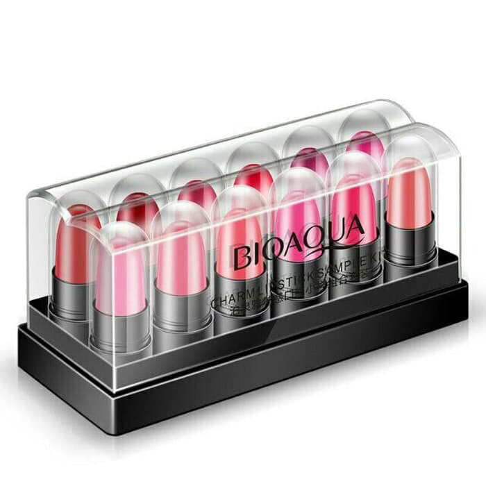 Bioaqua Charm Mini Lipstick Travel Set isi 12 pcs - lipstik glossy lembut warna mewah elegant Bioaqua Charm Lipstick Sample Kit - Lipstik Mini FLASH SALE/ POJOKBELANJA/ BISA BAYAR DI TEMPAT (COD)