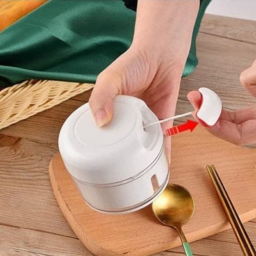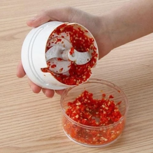 Alat ini sangat cocok untuk melengkapi perlengkapan dapur Anda. Dengan alat ini, Anda tidak perlu repot lagi ketika menumbuk bawang, memotong sayuran, mencincang daging, dll. Alat ini memakai sistem manual sehingga menghemat listrik. Dilengkapi dengan pisau yang tajam.Daging dan sayuran kini dapat Anda cincang dengan sangat mudah, tidak perlu lagi menggunakan pisau yang melelahkan dan memakan waktu lama. Anda hanya perlu menarik tali berulang kali sehingga pisau didalam berputar dan mencacah daging, sayuran, bawang, dll