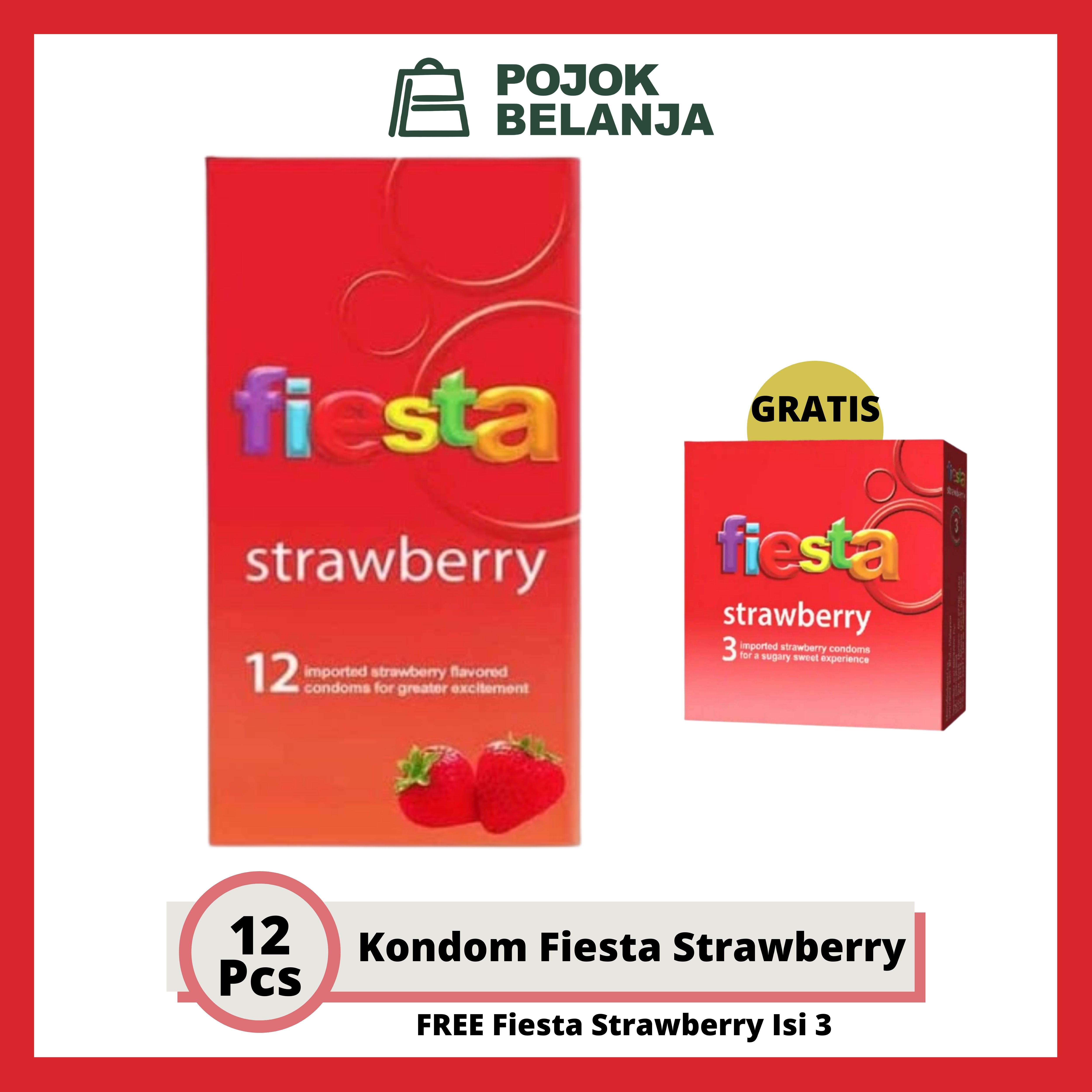BUY 1 GET 1 Kondom Fiesta Strawberry isi 12 Pcs Gratis Kondom Fiesta isi 3 pcs - Kondom Rasa Strawberry | Condom Fiesta Alat Kontrasepsi | Pojokbelanja
