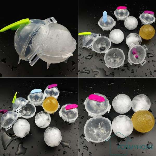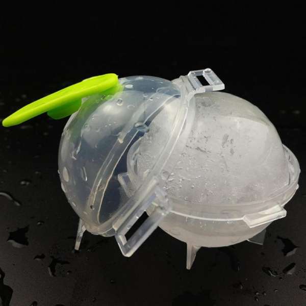 Cetakan es ini berbentuk bulat dengan penutup berbahan silikon untuk membuat es