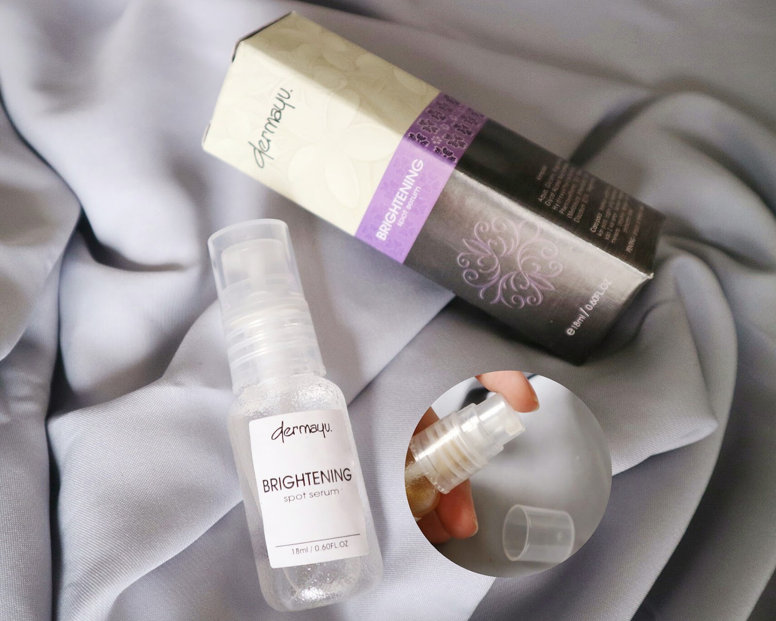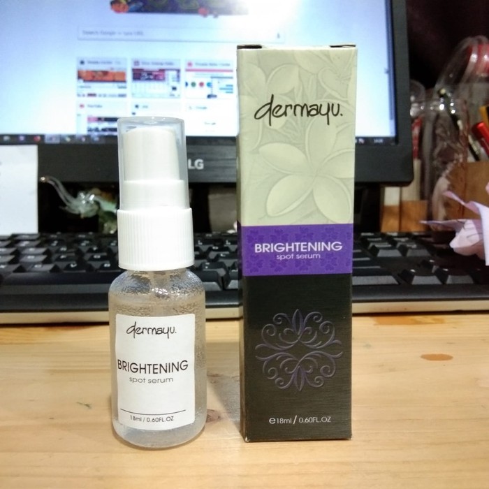 DERMAYU BRIGHTENING DARK SPOT SERUMORIGINAL 100%BPOM NA 18181900652Isi Bersih : 18mlMembantu menyamarkan noda hitam/flex hitam di jahSangat cocok untuk jah yang mengalami masalah flexCARA PEMAKAIAN :Bersihkan jah, oles-oles pada bagian yang bermasalah 2 kali sehari. Diamkan hingga meresap. Lanjutkan dengan cream peratan anda