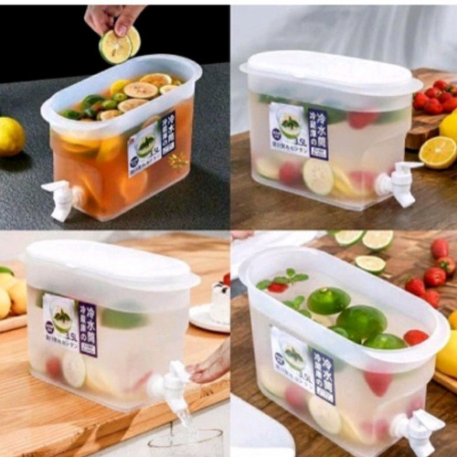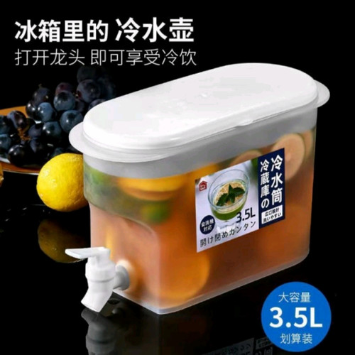 Dispenser Air Dingin | Dispenser Kulkas | Dispenser Minuman Jus- Harga Satuan- Bahan material plastik PP Food Grade,kuat dan tahan lama- Kapasitas 3.5 liter- Dimensi produk : 25.5x17x10.5cm- Bisa untuk minuman dingin atau normal- Produk ringan sehingga mudah dipindah dan dibawa- Di desain agar dapat ditaruh di dalam kulkas untuk mendinginkan minumanWadah dispenser air dapat digunakan untuk berbagai jenis minuman. Terdapat kran air sehingga sangat cocok untuk menaruh infused water, jus buah, sirup dll
