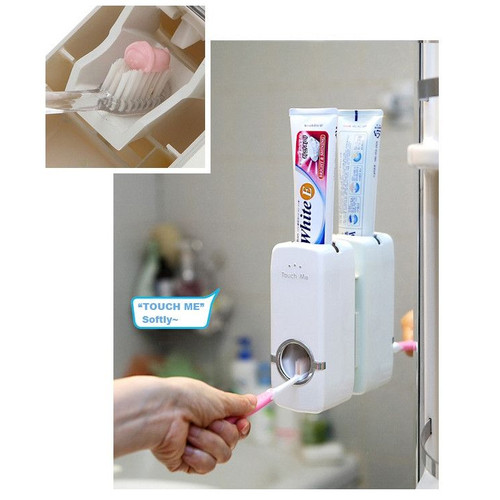 DISPENSER ODOL Tempat Sikat Gigi Rak Kamar Mandi Toothpaste Penjepit - Putih- Bayar Ditempat - COD
