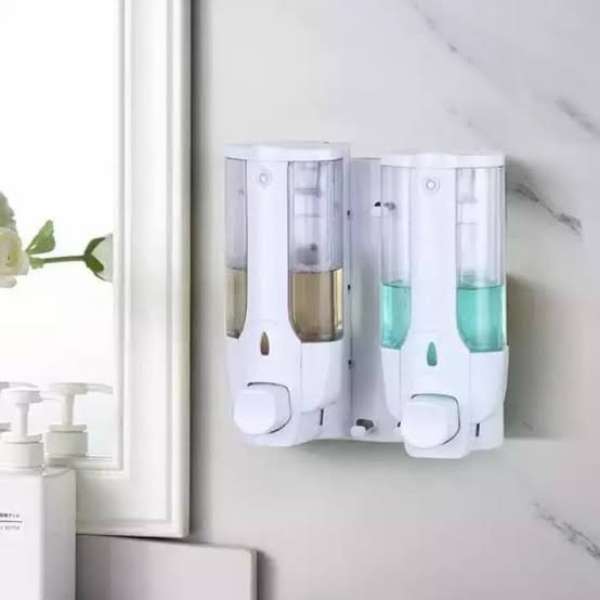 Dispenser Sabun Double Dispenser Sabun Cair Multifungsi ini berguna untuk tempat sabun mandi, lotion, shampoo maupun sabun muka.