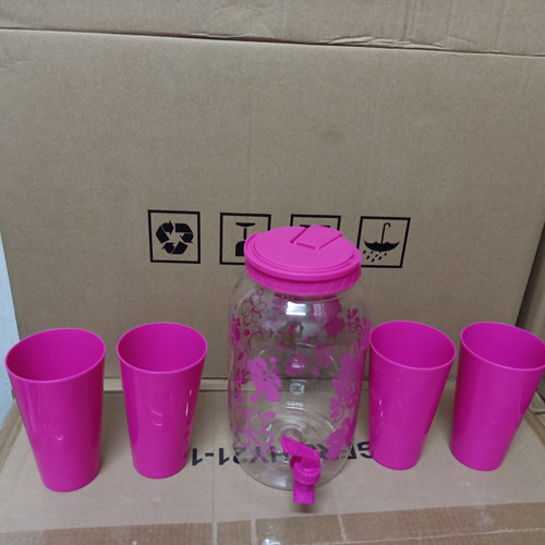 Wadah galon dispenser air untuk menampung berbagai jenis minuman. Terdapat keran air sehingga cocok juga untuk menaruh infused water, jus buah, sirup dsb. Di desain agar dapat ditaruh di kulkas untuk mendinginkan minuman. Minuman tetap higienis dan kesegaran terjaga.