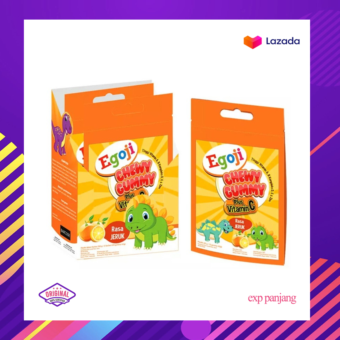 EGOJI CHEWY GUMMY JERUK SACH 5S merupakansuplemen tinggi Vitamin A, Vitamin B kompleks, Vitamin D, Vitamin E dan Zinc dengan rasa jeruk yang disukai anak-anak. Produk ini dapat digunakan untuk memelihara daya tahan tubuh anak serta dapat juga merawat sel-sel serta jaringan tubuh.