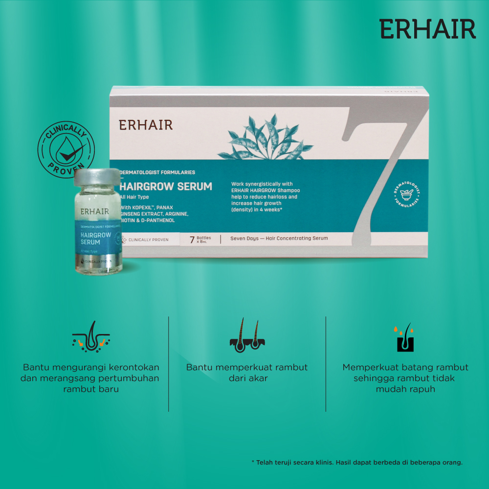 Erha HairGrow Serum merupakan serum rambut yang teruji klinis membantu untuk mengurangi kerontokan rambut, meningkatkan pertumbuhan rambut, dan menebalkan rambut hingga 61%.