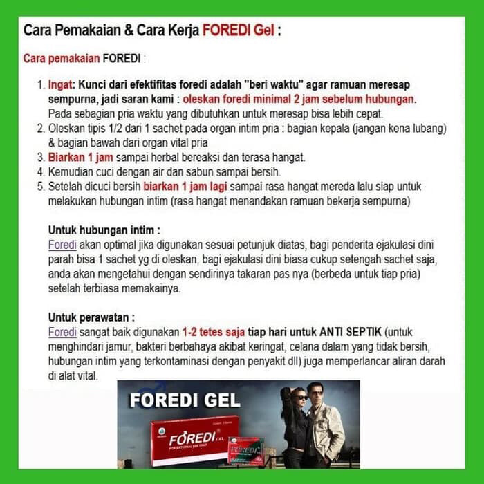 Ini mungkin kamu sedang cari, cek dulu yuk di Toko360, tempatnya Fun Shopping. "FOREDI GEL ORIGINAL 1 Box Isi 3 Sachet -- Pasutri FLASH SALE/ POJOKBEL.." https://www.toko360.com/p/MTA3NTUy
