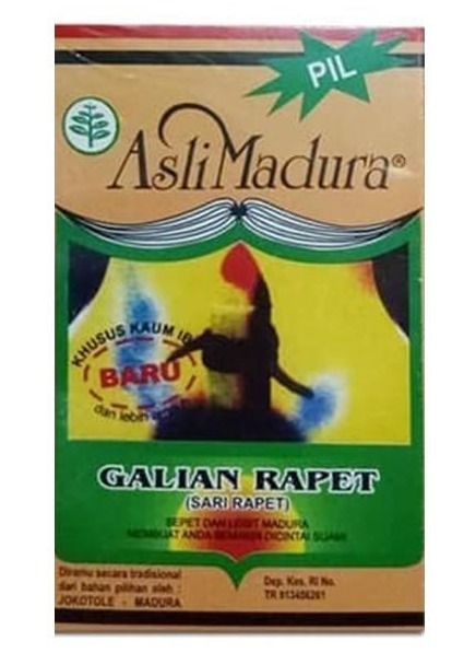 Jamu Galian Rapet (sari rapet) Berfungsi untuk merapatkan organ kewanitaan, menghilangkan lendir dan bau tidak sedap. Aman di konsumsi dan tanpa efek samping.