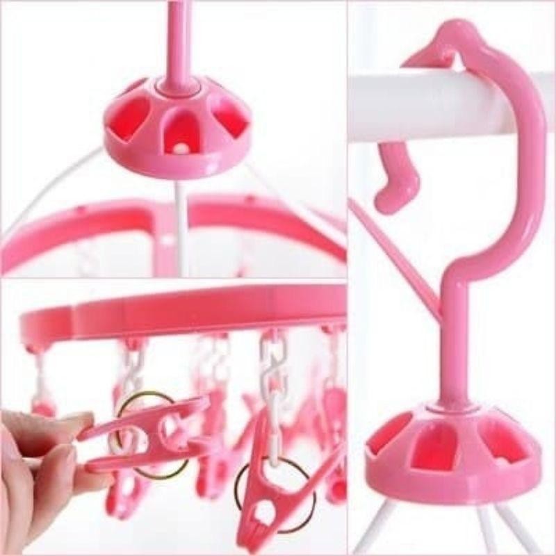 Gantungan Jemuran 16 Jepit Serbaguna Jepitan Jemuran Hanger SerbagunaGantungan Jemuran 16 Jepit - Serbaguna Hanger Serbaguna 16 jepit adalah hanger dengan 16 anak jepitan. Sangat praktis dipakai untuk jemuran kaos kaki, celana dalam, bra, pakaian bayi, sarung tangan. Irit tempat, dengan hanger ini tali atau tiang jemuran bisa gantung lebih banyak pakaian.Kepala jepitan bergerigi halus, jepitnya kuat, gak mudah lepas meski ditiup angin. Tidak mudah jatuh meski diitiup angin.Fitur :-Memiliki 16 jepitan-Kail bisa memutar, berputar mengikuti arah tiupan angin sehingga jemuran lebih cepat kering.