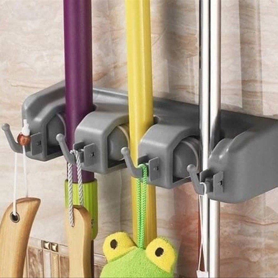 Nama Barang : Mop Holder 3 SlotSimpan dan tata sapu, alat pel dan alat kebersihan lainnya di Magic Hanging Holder 3 Slots ini. Dengan alat ini sapu kamu gak jadi cepat lebar dan kain pel jadi lebih cepat kering karena digantung dengan benar.Magic Holder yang didesain dengan bola putar memegang berbagai tipe gagang sapu. Kecil atau besar gak masalah.Konstruksi plastik yang ringan tapi tahan lama.Bola putar yang unik ini memegang dengan kencang sesuai ketebalan gagang sapu.Bantalannya terbuat dari karet anti slip sehingga gagang sapu tidak bergeser.Di desain dengan kokoh untuk digantung di dinding rumah.Tersedia skrup untuk dan instalasi mudah dan cepat.Pas untuk penyimpanan dan penataan sapu, alat pel, dan alat kebersihan lainnya.Pas untuk jadi tempat penyimpanan di dapur, tempat cuci, basement atau garasi.