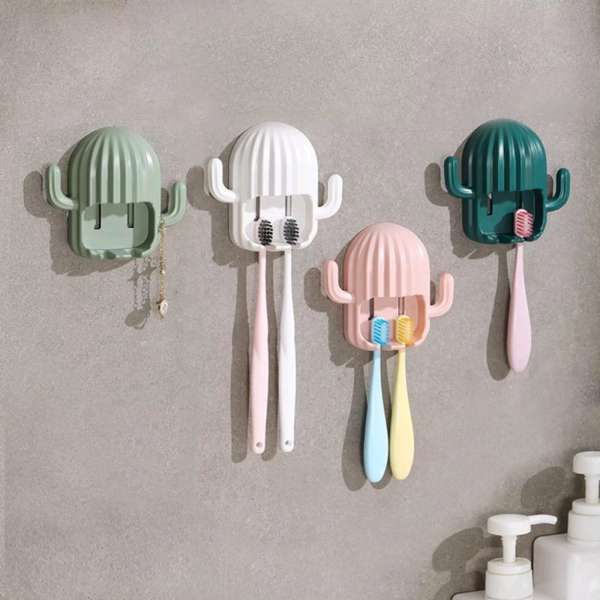 Gantungan Tempel Sikat Gigi Motif Kaktus Holder Hook Rak Tempat Sikat Gigi Tempel Kamar Mandi Tempat Sikat Gigi Gantung