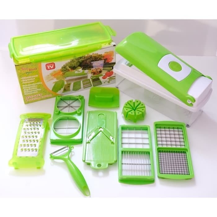 Grosir 1 DUS isi 24piece. NICER DICER PLUS memiliki 11 macam pisau pemotong, Anda dpt memotong, mengiris, memotong dadu, sampai dgn mengiris yang sangat tipis sekalipun, semua itu dikerjakan dgn sangat mudah dan sayur yang dipotong akan tampak lebih fresh & bersih karena tanpa menyentuh kesayur. Hasil yg didapatkan juga akan mempunyai ukuran yang samaAlat pemotong ini memiliki 5 mata pisau yg sangat kokoh, setiap pisau terbuat dari stainless steel yg super tajam. Hanya dgn plat pisat kebagian penutup container maka sayur/buah dapat dipotong dgn mudah sesuai dengan bentuk yg kita inginkanSetiap mata pisau mempunyai kemampuan untuk memotong sayur dgn bentuk yg berbeda-bedaKEUNGGULAN NICER DICER PLUS:Sangat Mudah & higienis penggunaannyaidk mempergunakan power listrikMudah dibersihkanMakanan lebih bersih & Indah dilihat11 macam jenis potonganMenghemat waktu memasak anda1 set NICER DICER PLUS terdiri dari :- Penutup wadah yang dilengkapi kancing untuk dapat dibuka pada saat membersihkan- Perangkat untuk menancapkan makanan saat kita memotong- Pisau pemotong 6x6mm/12x12mm- Pisau pemotong 18x18mm/6x36mm- Pisau pemotong quarter/wedges- Partikel untuk menutup mata pisau ( safety)- Pisau untuk mengupas kulit- Penutup yg terbuat dr plastikQUALITY CEK: NO RETUR! Sebelum di packing akan kami quality cek sebelum dikirim. Kerusakan yang terjadi di dalam pengiriman mohon maaf kami tidak bisa tanggung jawab. Untuk Keamanan pengiriman di sarankan untuk Tambah XTRA Bubble wrap & Kardus & tambahkan ASURANSI PENGIRIMAN saat cek out. Tambah Packing ORDER = SETUJU*FREE Packing Bubble Wrap + Box=====================================================================