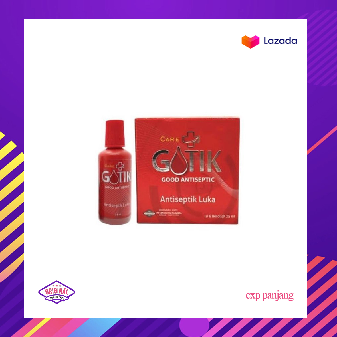 Gotik 25ml adalah antiseptik luka dalam bentuk cair yang digunakan untuk mencegah infeksi pada luka dan menghentikan pendarahan. Kandungan povidone iodine bekerja dengan cara merusak sel kuman dan membuatnya menjadi tidak aktif.