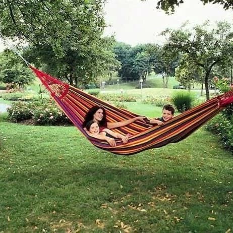 Ready warnasalur birusalur merahsalur hijauHammockBuat suasana liburanmu semakin santai dan rileks dengan menggunakan Hammock. Hammock berupa tempat tidur gantung ini cocok banget jadi teman saat liburan. Pastinya bersantai saat liburan jadi semakin terasa nikmatnya.Kamu tinggal mengikatkan Hammock ini di pohon, tiang, atau penyangga kuat lainnya. Hammock ini juga mudah banget kamu bawa kemana-mana, karena terbuat dari kain yang ringan. Jadi buat kamu yang liburan ke pantai atau ke hutan sekalipun, nggak masalah dengan membawa Hammock ini.- Material : Canvas- Load Capacity : 120kg- Type : Warm Weather- Size : approx 200 x 80cm
