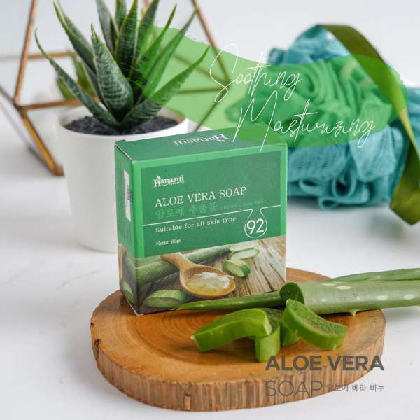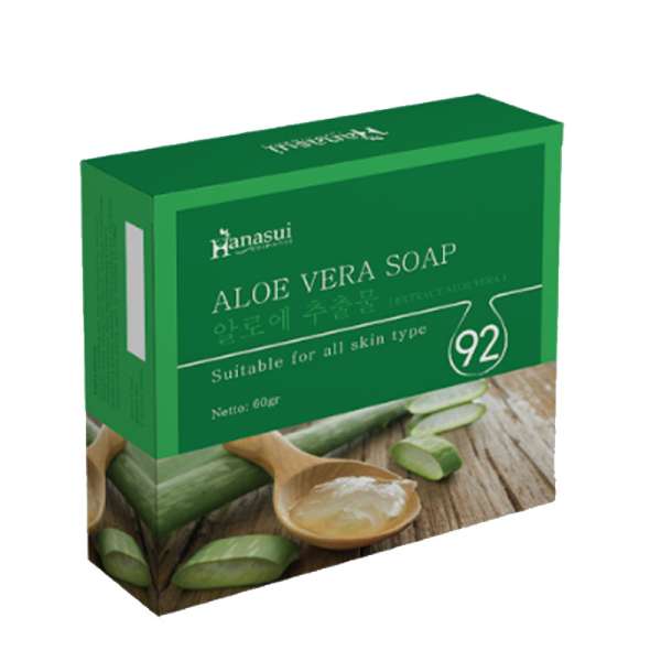 Kenapa harus menggunakan zat kimia keras kalau dengan bahan-bahan alami sudah bisa bantu mencerahkan kulit? Hanasui Soap Series dengan 3 varian herbal adalah sabun mandi khusus yang formulanya aman untuk membersihkan kulit, mampu menghadirkan kulit yang putih, sehat dan terhindar dari berbagai masalah. Hanasui Aloe vera soap mengambil manfaat ekstrak lidah buaya 92% sebagai pelembab alami kulit kering, berfungsi untuk meringankan noda hitam / bekas luka yang masih tertinggal. Sabun lidah buaya pertama yang menggunakan teknologi tinggi sehingga vitamin dan mineralnya bisa diserap dengan baik.