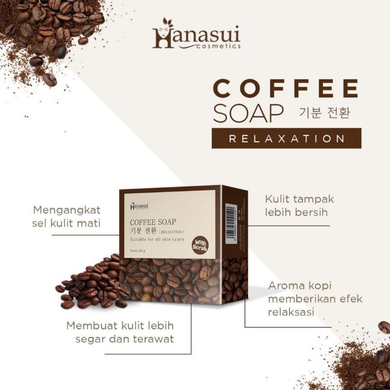 Hanasui Coffee Bar Soap 30gr SABUN KOPI HANASUI / Hanasui Coffee Soap with Scrub ada varian COFFEE ALOE VERA BAMBOO CHARCOAL RICE SOAP HANASUI BPOM Aman COFFEE ALOE VERA BAMBOO CHARCOAL RICE SOAP HANASUI BPOM Aman - Bayar Ditempat - COD -