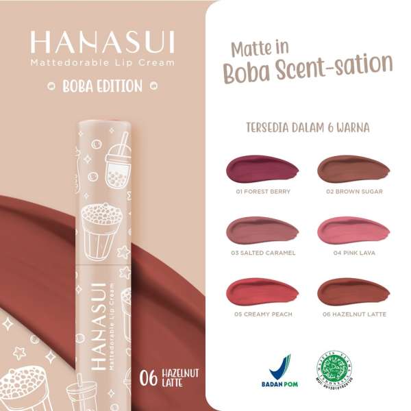 Hanasui menghadirkan cara baru untuk menikmati minuman Boba tanpa khawatir kalori, dan itu dengan Hanasui Mattedorable Lip Cream Boba edition Penggemar Boba dapat menikmati pengalaman menggunakan Lip Cream dengan aroma Boba yang menenangkan di bibir sepanjang hari.