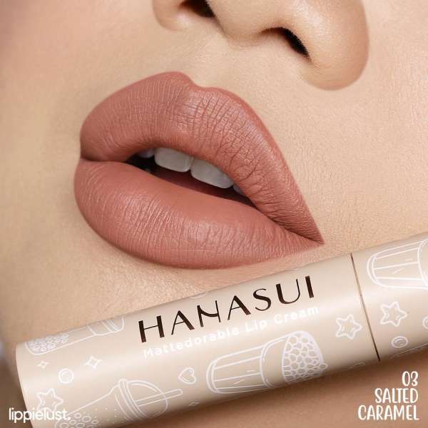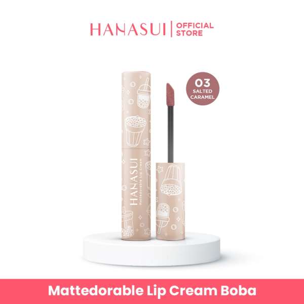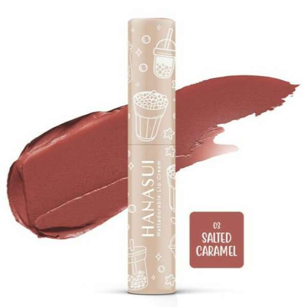 HANASUI MATTEDORABLE LIPCREAM BOBA EDITION NO.3 SALTED CARAMEL Minuman Boba menjadi inspirasi Hanasui dalam berinovasi menghadirkan produk baru. Hanasui menghadirkan cara baru untuk menikmati minuman Boba tanpa khawatir kalori, dan itu dengan Hanasui Mattedorable Lip Cream Boba edition Penggemar Boba dapat menikmati pengalaman menggunakan Lip Cream dengan aroma Boba yang menenangkan di bibir sepanjang hari. Dengan finishing velvet yang ringan dan formula yang tahan lama, pigmen sempurna, dan nyaman di bibir disertai kandungan Olive Oil & Vitamin E yang membuat bibirmu terhidrasi dengan baik. 1. Sensasi dan wangi boba yang menyenangkan 2. Velvet matte finish 3. Pigmented 4. Double Moisturizing ( olive oil & vitamin E ) 5. Long lasting 6. No Paraben Added 7. Dapat digunakan sebagai blush on Netto : 4gr BPOM : NA18211300984