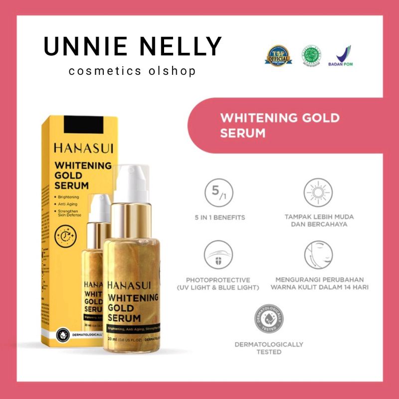 HANASUI Original Serum Whitening Gold By Jaya Mandiri Kulit Cerah Alami Vitamin C E BPOM 20ml Whitening Antiaging / Keriput Serum Kulit Glowing Original Dus Gold Emas Mencerahkan Anti Oksidan Hanasui Asli BPOM - Bayar Ditempat - COD