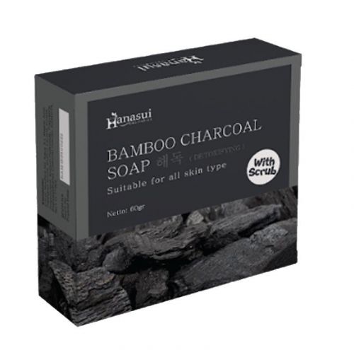Hanasui Bamboo Charcoal Scrub Soap í•´ë…Sabun yang mengandung campuran Arang Bamboo Hitam yang mampu menyegarkan kulit yang kusam dan merevitalisasi kulit sehingga tampak lebih sehat. Busa yang melimpah berfungsi membersihkan seluruh permukaan tubuh dan disertai dengan scrub halus untuk mengangkat sel kulit mati. Cocok untuk semua jenis kulit.