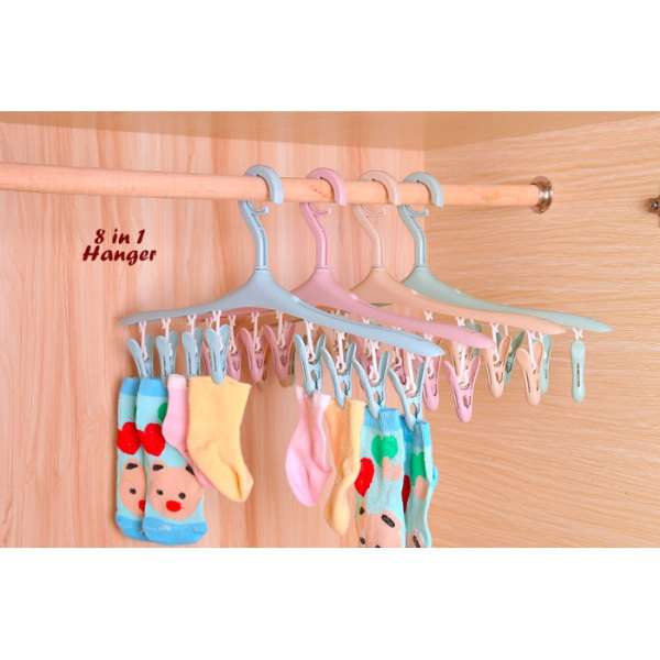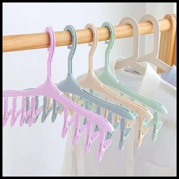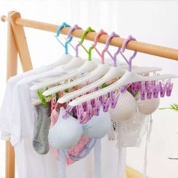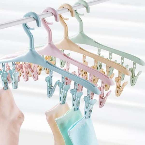 Jemuran Multifungsi ini sangat praktis dipakai untuk menjemur kaos kaki, celana dalam, bra, pakaian bayi, sarung tangan. Irit tempat, dengan hanger ini tali atau tiang jemuran bisa meng-gantung lebih banyak pakaian.