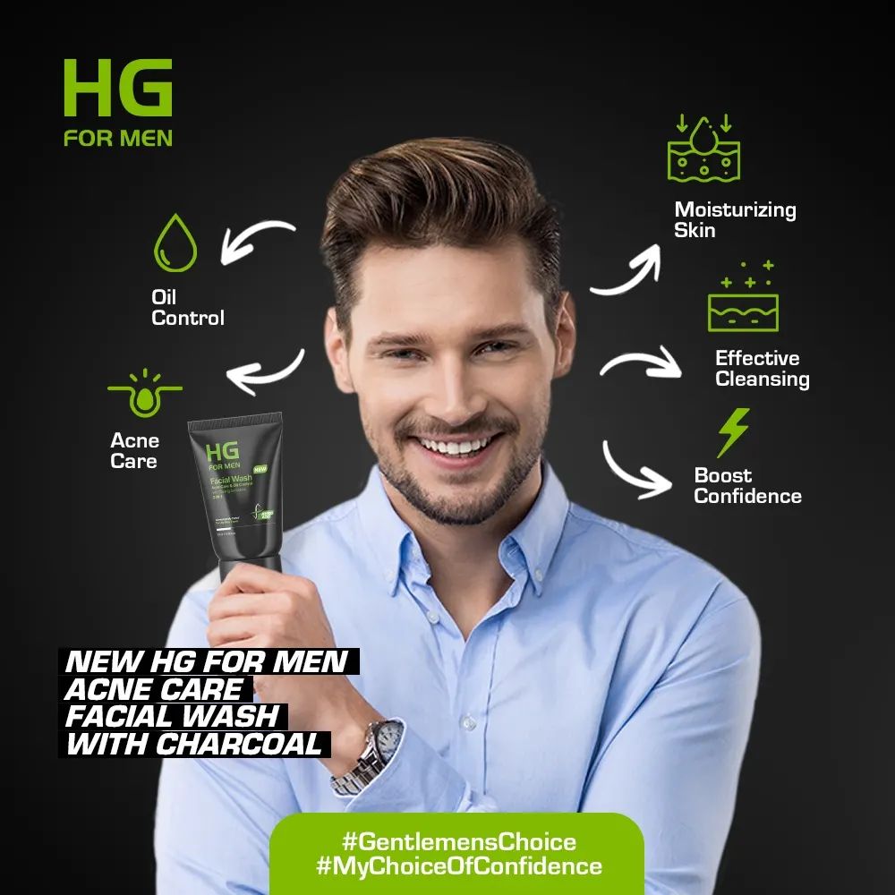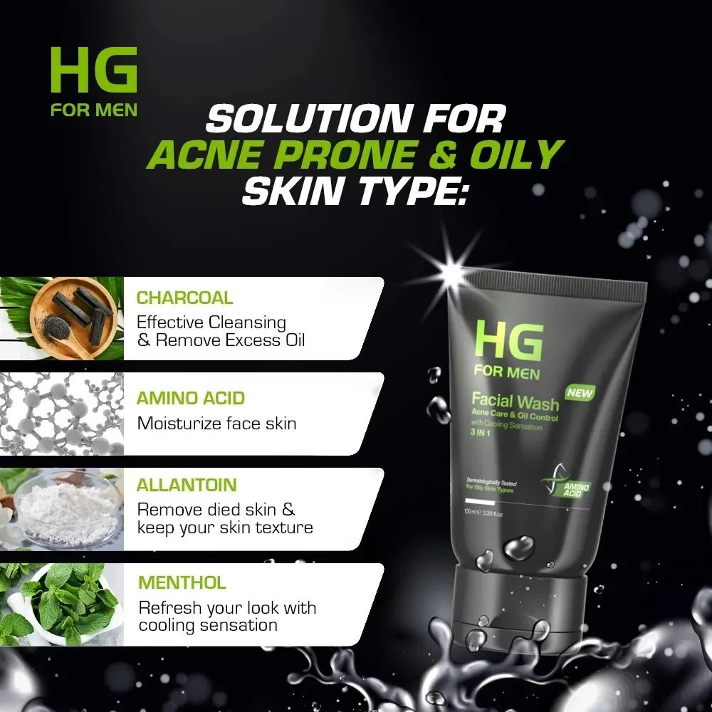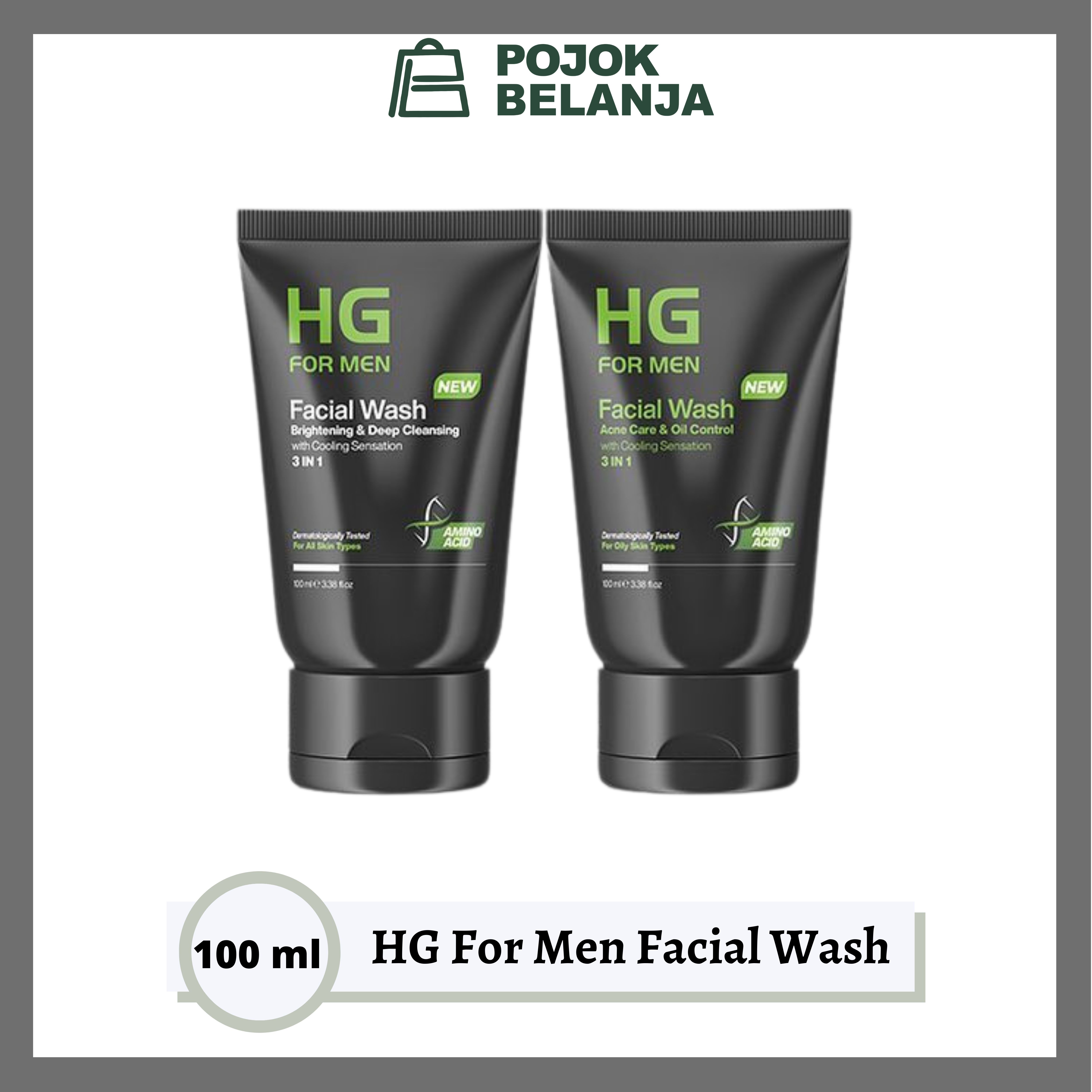 HG For Men Facial Wash Brightening & Deep Cleansing - Acne Care & Oil Control 100 ml | Sabun Jerawat Mencerahkan Pria | Pojokbelanja