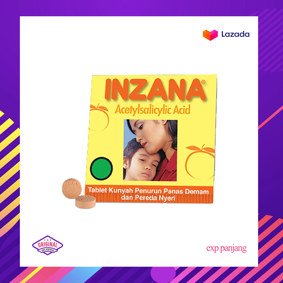 INZANA merupakan tablet kunyah yang mengandung Asam Asetilsalisilat untuk penurun panas, demam, serta pereda nyeri pada anak.