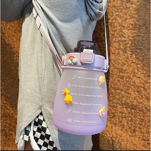 1 Koli isi 50pcsBotol Minum 1.3 Liter/1300ML Korea VIRAL ANAK SEKOLAH OLAHRAGA HANGOUT 1.3 LITERFREE STIKER !!!FREE TALI (motif stiker random)1 Koli isi 50pcsBahan : Plastik PP + PVC + SiliconeKapasitas 1.3 LiterPacking Plastik OPPVARIAN (Pilih warna tutupnya ya...)- Ungu- Hijau- Pink- BiruDengan kapasitas 1300ml, Lebih praktis dan tidak memakan banyak space tempat. Terbuat dari plastik bening dan tebal, Dengan penutup Flip Up with Lock yang aman dan Anti Bocor . Selain itu juga aman dipakai karna bahan aman BPA FREE & Food Grade. Cocok untuk anak bawa air putih kemana saja lebih simpel dengan bentuknya yang lucu dan gak ribet untuk di bawa kemana mana.KEUNGULAN :Di design dengan penanda waktu untuk mengingatkan konsumsi air per 2 jam, lengkap dengan pegangan yang kuat, ringan namun tahan lama untuk digunakan, hadir dengan berbagai warna cerah, ini sangat cocok untuk hadiah orang yang Anda cintai, untuk membantu mereka tetap terhidrasi dan sehat. PERATURAN TOKO:- Mohon buat Video Unboxing saat paket Diterima dan Dibuka karena kami tidak menerima komplain jika ada barang yang rusak atau salah kirim tanpa Video Unboxing.- Jika ada kesalahan produk / kurang barang, Mohon lampirkan video unboxing, foto produk dan Label Pengiriman- Mohon untuk isi data Nama, Alamat, No Telp yang lengkap ( untuk memudahkan kurir menemukan alamat pembeli )- Mohon di cek ulang Nama Produk, Jumlah, Varian, Warna yang sudah di klik sebelum diorder karena Kami Tidak Menerima Sisipan di catatan / chatHappy shopping Jangan Lupa Bintang 5 âââââCara Perawatan- Harap cuci produk dahulu ketika barang sampai sebelum digunakan.- Alangkah baiknya Botol Minum segera dicuci setelah digunakan.- Disarankan untuk tidak diisi dengan air panas.- Simpan Botol Minum ditempat kering atau tidak lembab.