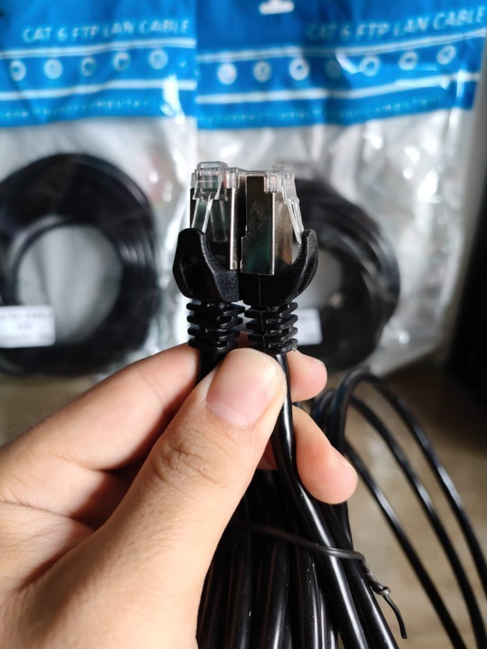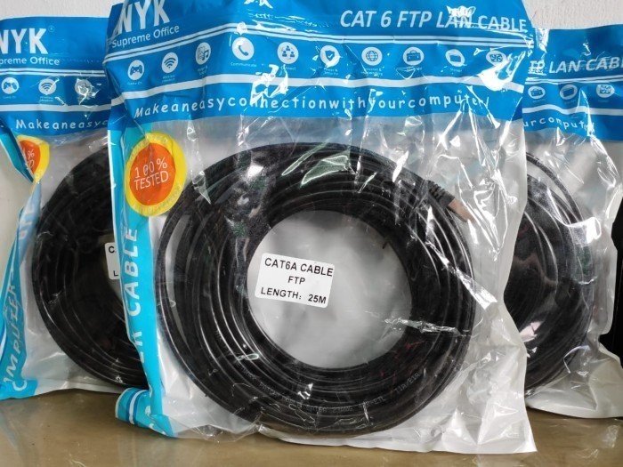 KABEL LAN siap pakai*panjang 25 meter*Warna hitam*Kulit kabel lebih lentur sehingga mudah diatur, ground dan dilapisi aluminium foilSpesifikasi kabel FTP Cat 6*FTP CAT 6*Aplication Indoor, Outdoor*high speed transfer rate 1 gigabit*high quality low cost*CCA Conductors*POE good