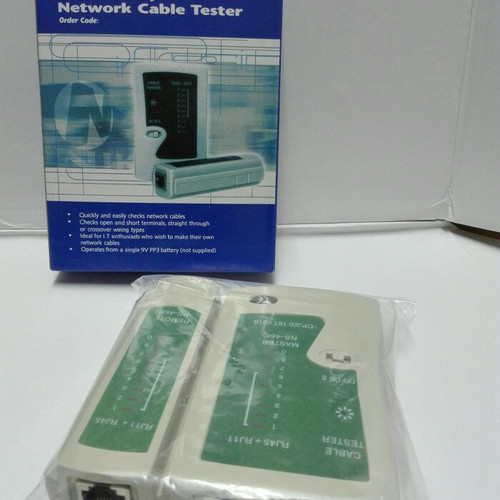 kabel tester rj 11 & rj -45Alat ini dapat digunakan untuk test apakah kabel jaringan komputer ada yang putus atau tidak sehingga kita dapat memastikan kabel jaringan komputer ada masalah atau tidak. Selain Kabel jaringan komputer alat ini juga punya lubang konektor lain untuk mengetes kabel telepon juga. (Lan Tester untuk RJ 45 dan RJ 11)