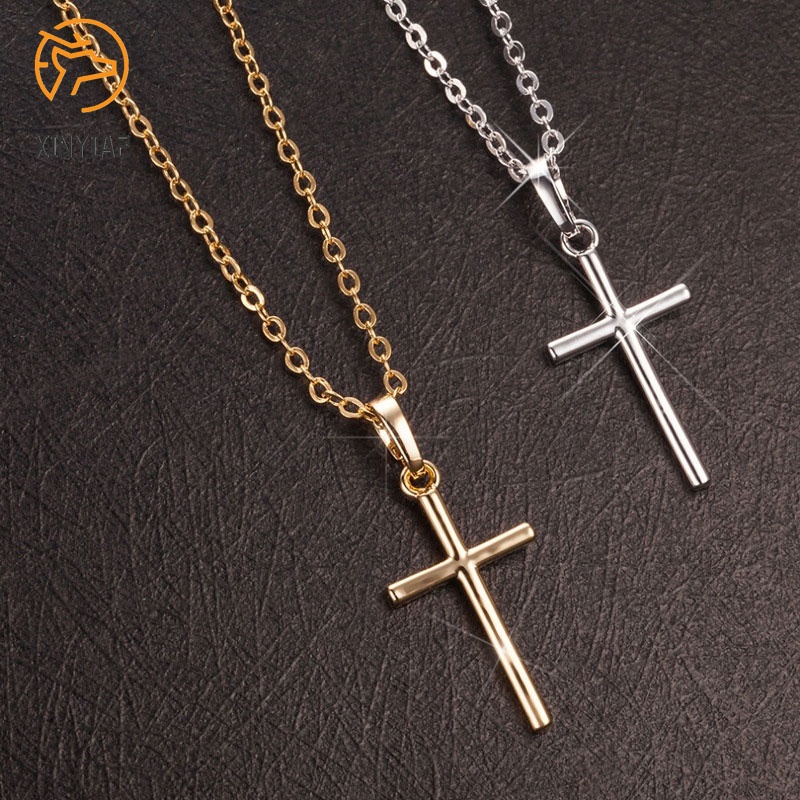 Kalung Liontin Salib Titanium Unisex - Pria - Wanita Anti Karat Viral Tiktok Korean Necklace Stainless Steel Warna Perak Silver Emas Anti Air Gold Fashion Import - Harga Grosir Termurah - Bayar Ditempat - COD