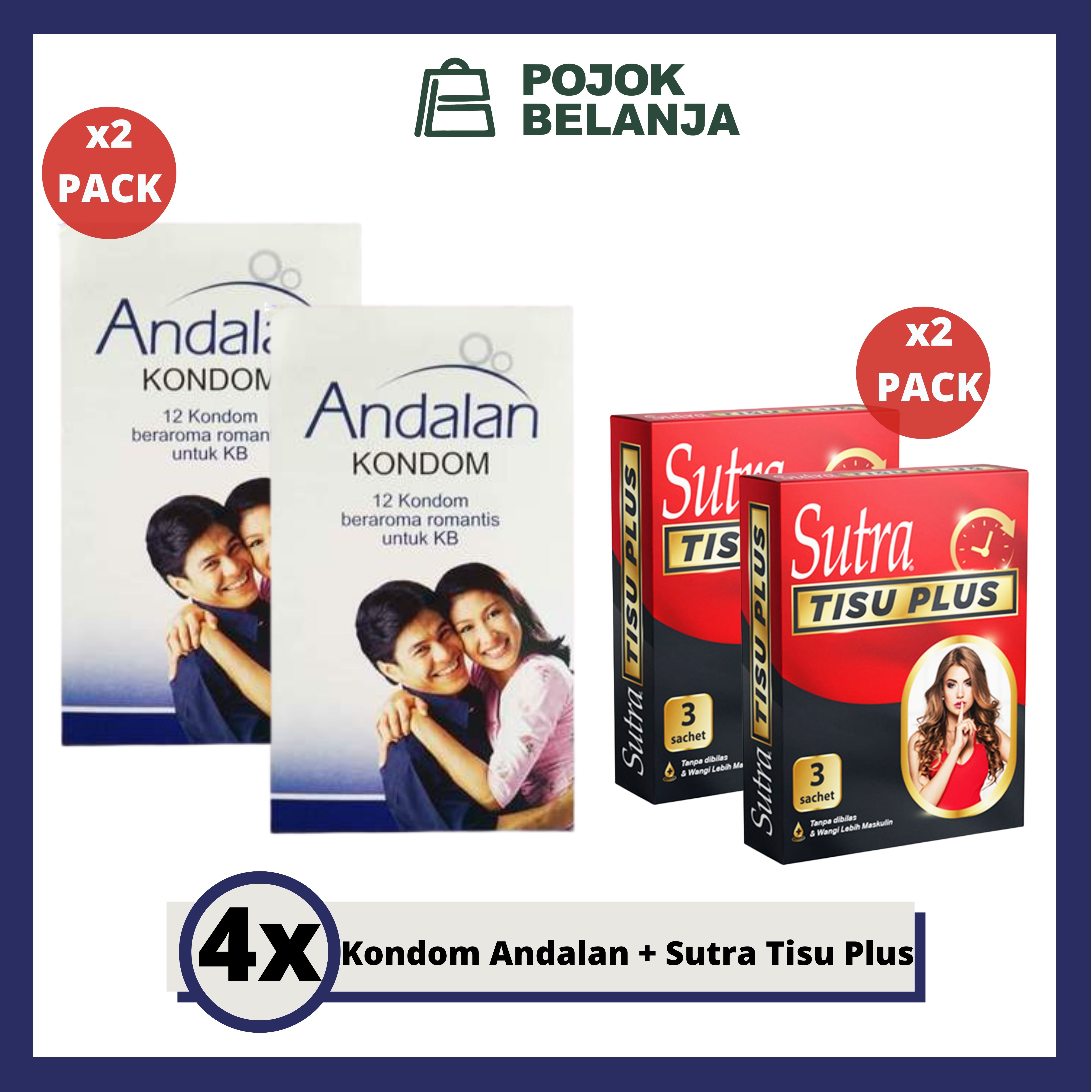 Kondom Andalan 12s x2 & Sutra Tisu Plus x 2 Pack | Tisu Sekali Bilas | Pojokbelanja
