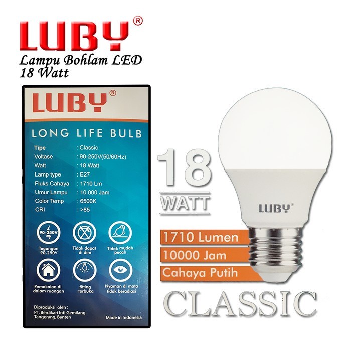 Luby Classic 18 Watt Bohlam LED Lampu Rumah Super Terang