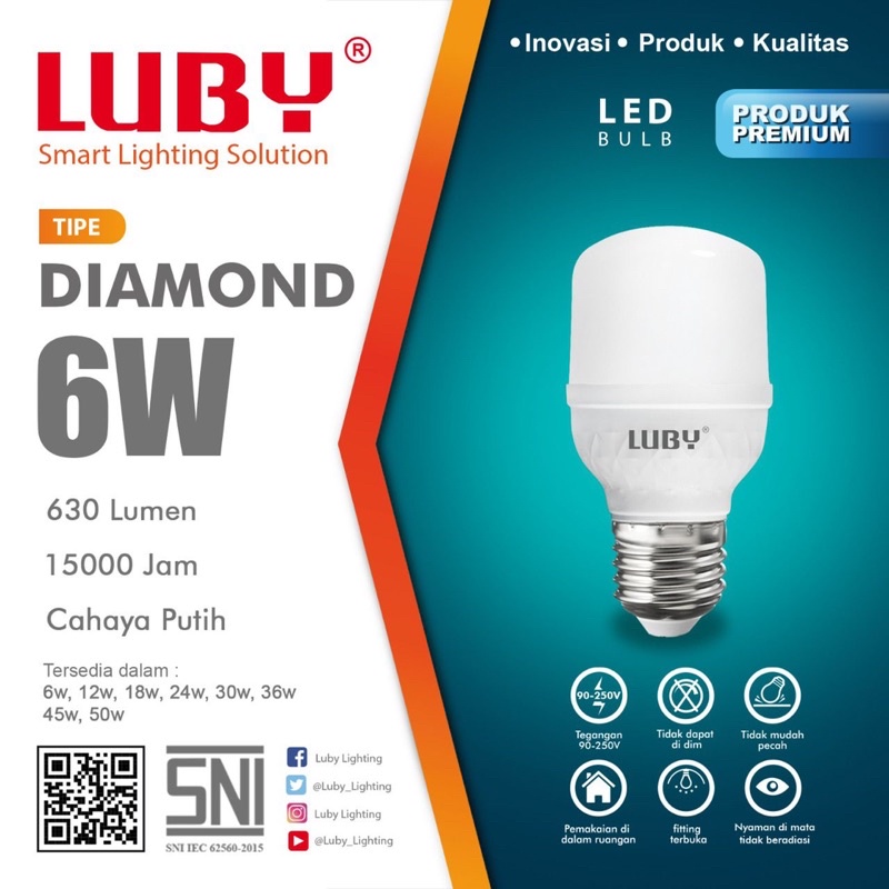 Luby Diamond 6 Watt Bohlam LED Lampu Rumah Super Terang