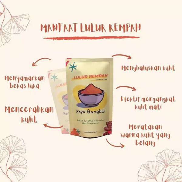 Lulur Kayu Bangkal   Lulur rempah bangkal merupakan lulur khas dari Banjarmasin kal-sel yang terbuat dari rempah-rempah alami dan kayu bangkal Lulur ini sangat aman di gunakan pada semua jenis kulit dan aman digunakan oleh bumil dan busui  Manfaat dari scrub kayu bangkal : - memutihkan kulit seluruh tubuh - sangat efektif mengangkat sel kulit mati - meratakan warna kulit belang - menyamarkan bekas luka - menghaluskan kulit - menyamarkan koreng  Cara pemakaian :  Ambil bubuk lulur bangkal secukupnya, campur dengan susu Kemudian oles ke seluruh tubuh Diamkan 5 menit Gosok lulur secara perlahan agar sel kulit mati terangkat Bilas air bersih  100% bahan alami  Aman digunakan dalam jangka panjang