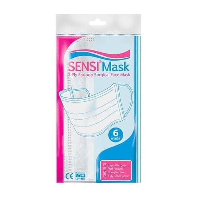 MASKER SENSI EARLOOP 3 PLY / 1 BUNGKUS ISI 6 PCS / pojokbelanja / BISA BAYAR DI TEMPAT (COD)