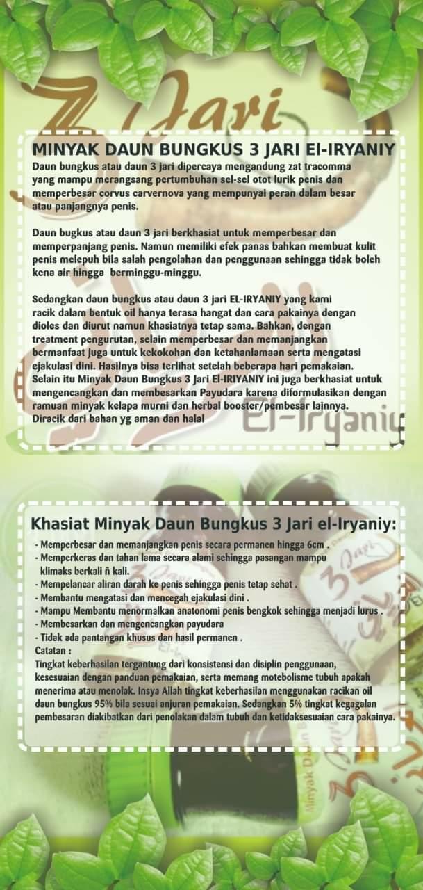 Minyak Daun Bungkus 3 Tiga Jari Al Iryaniy El Iryaniy 45 ml- Pasutri Original - FLASH SALE/ POJOKBELANJA/ BISA BAYAR DI TEMPAT (COD)
