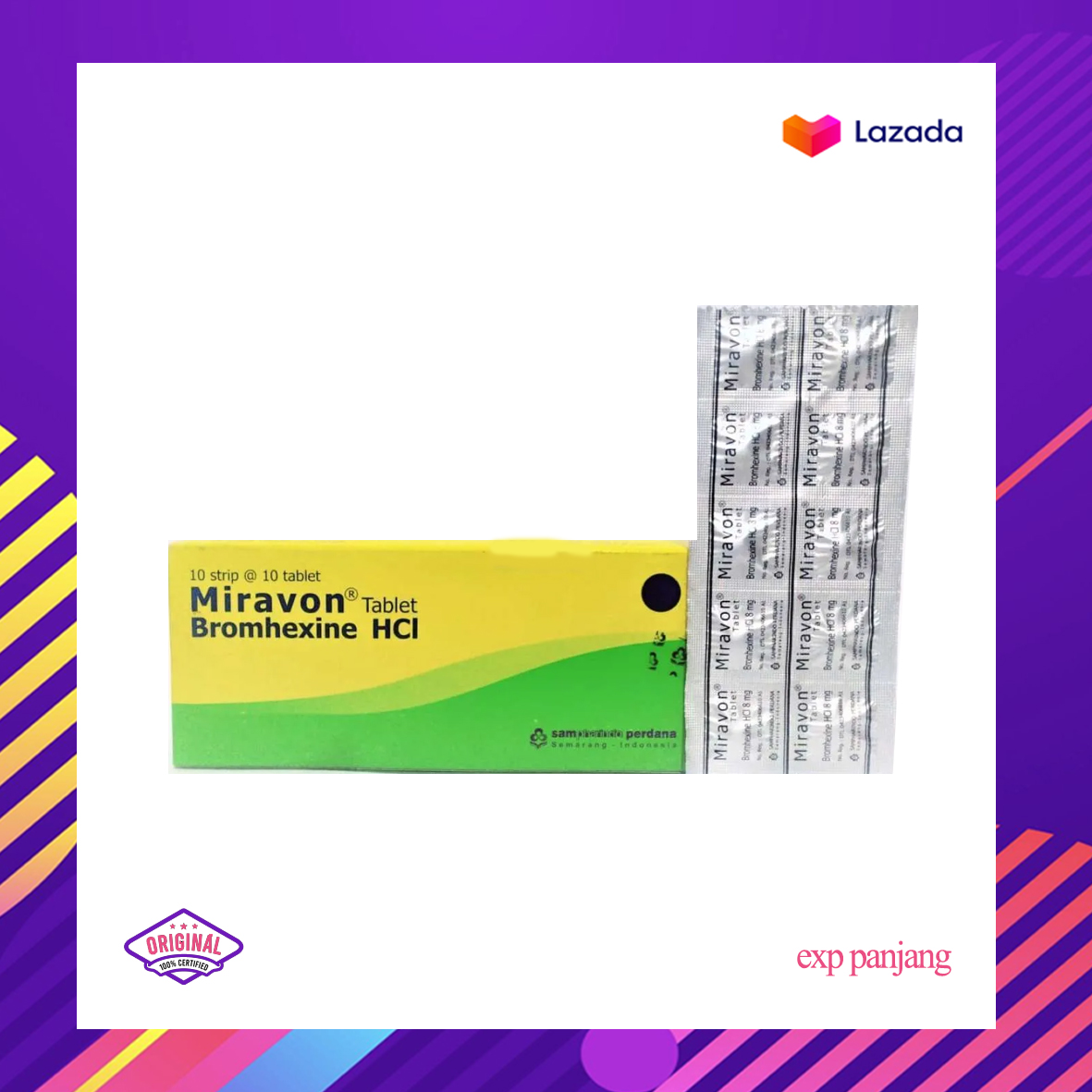Miravon adalah obat yang mengandung Bromhexine yang digunakan untuk mengencerkan dahak pada saluran pernapasan atau yang disebut juga dengan mukolitik. Miravon bekerja dengan cara menghambat kerja sel yang menghasilkan dahak atau mukus, sehingga menghasilkan dahak yang tidak kental dan mudah untuk dikeluarkan.