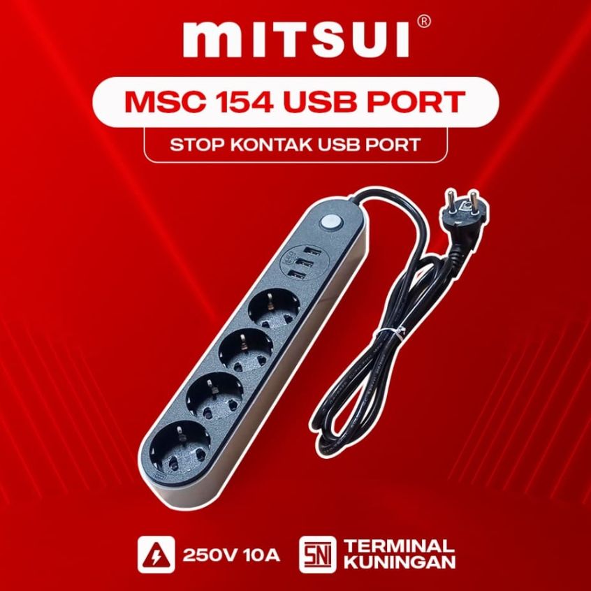 Mitsui Stop Kontak Kabel Colokan Listrik On Off 1.6 Meter 4 Lubang 3 USB Port