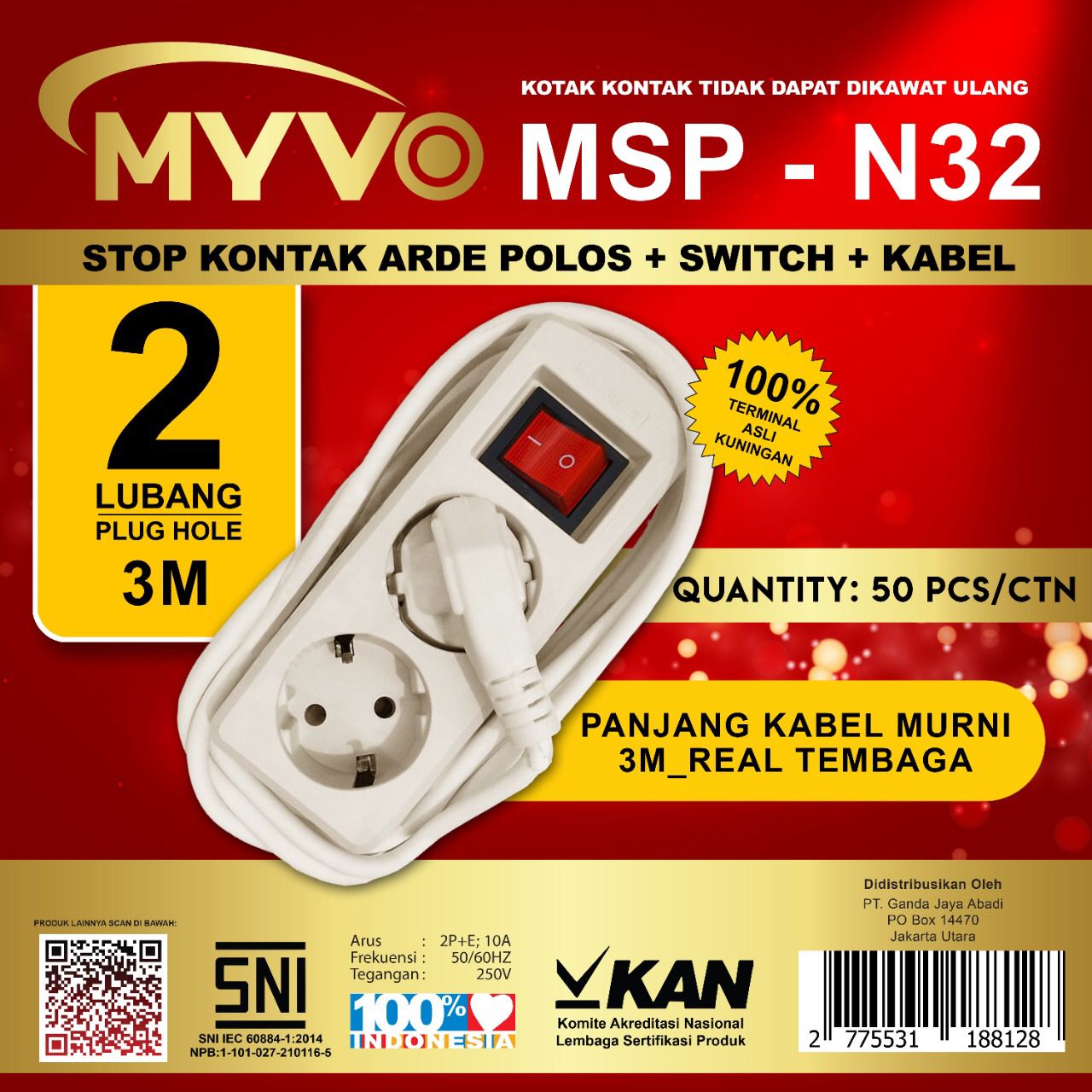 Myvo Stop Kontak Kabel Colokan Listrik On Off 3 Meter 2 Lubang