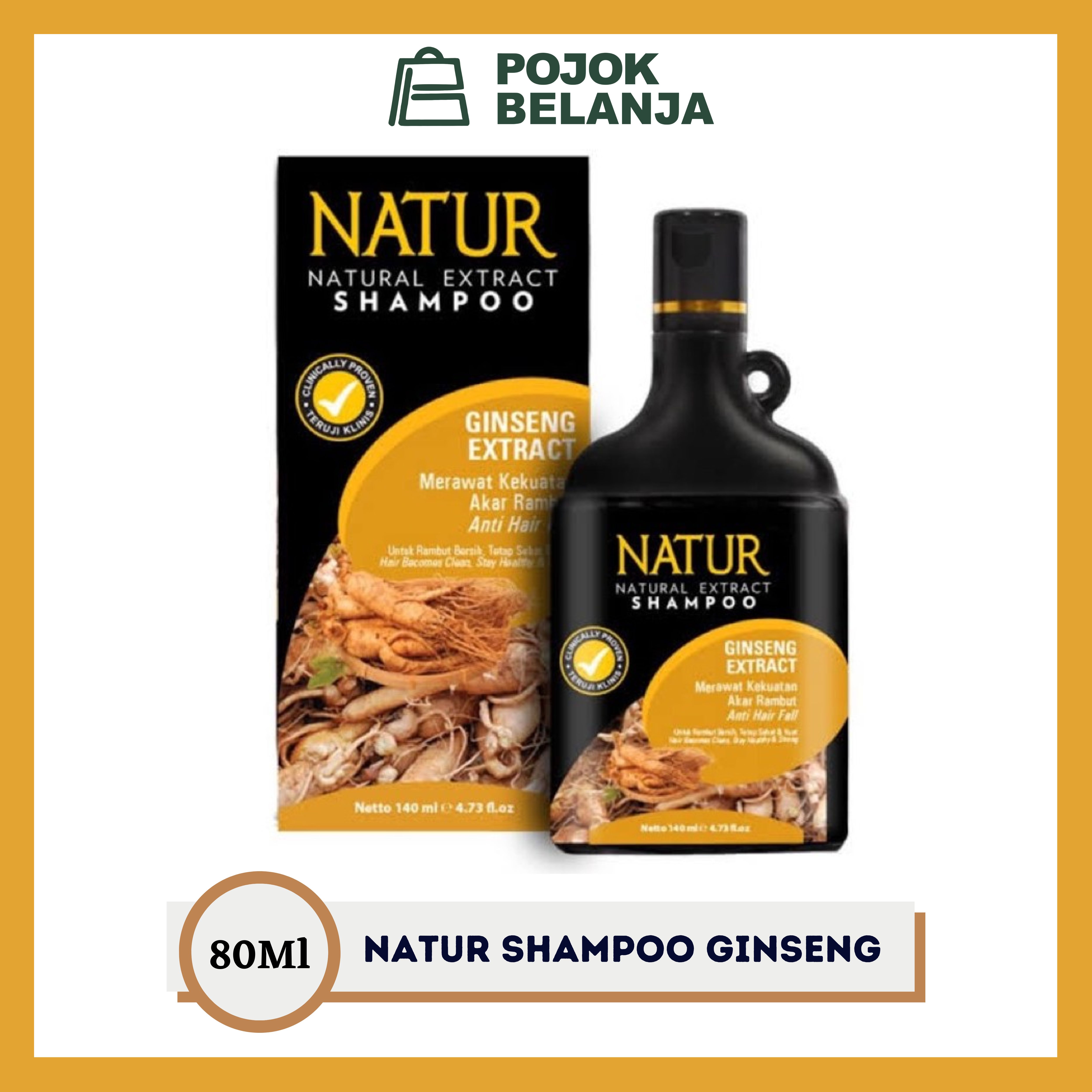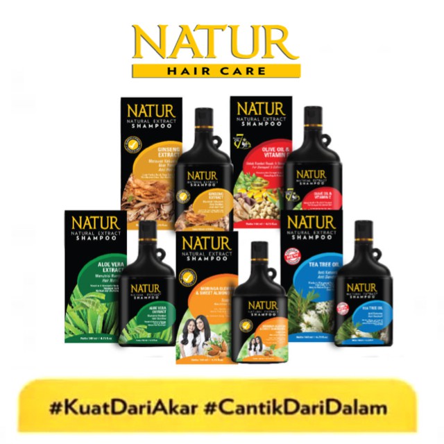 NATUR Natural Extract Hair Shampoo Shampo Rambut Ginseng Ukuran 80ml Pojokbelanja