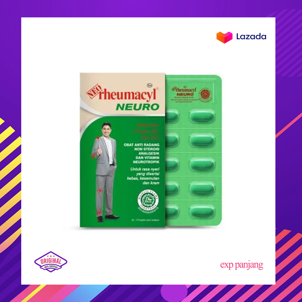 NEO RHEUMACYL NEURO merupakan obat dengan kandungan Ibuprofen, Vitamin B1, Vitmin B6, dan Vitamin B12. Obat ini dapat digunakan untuk meringankan rasa nyeri atau ngilu yang disertai kebas, kesemutan, dan kram
