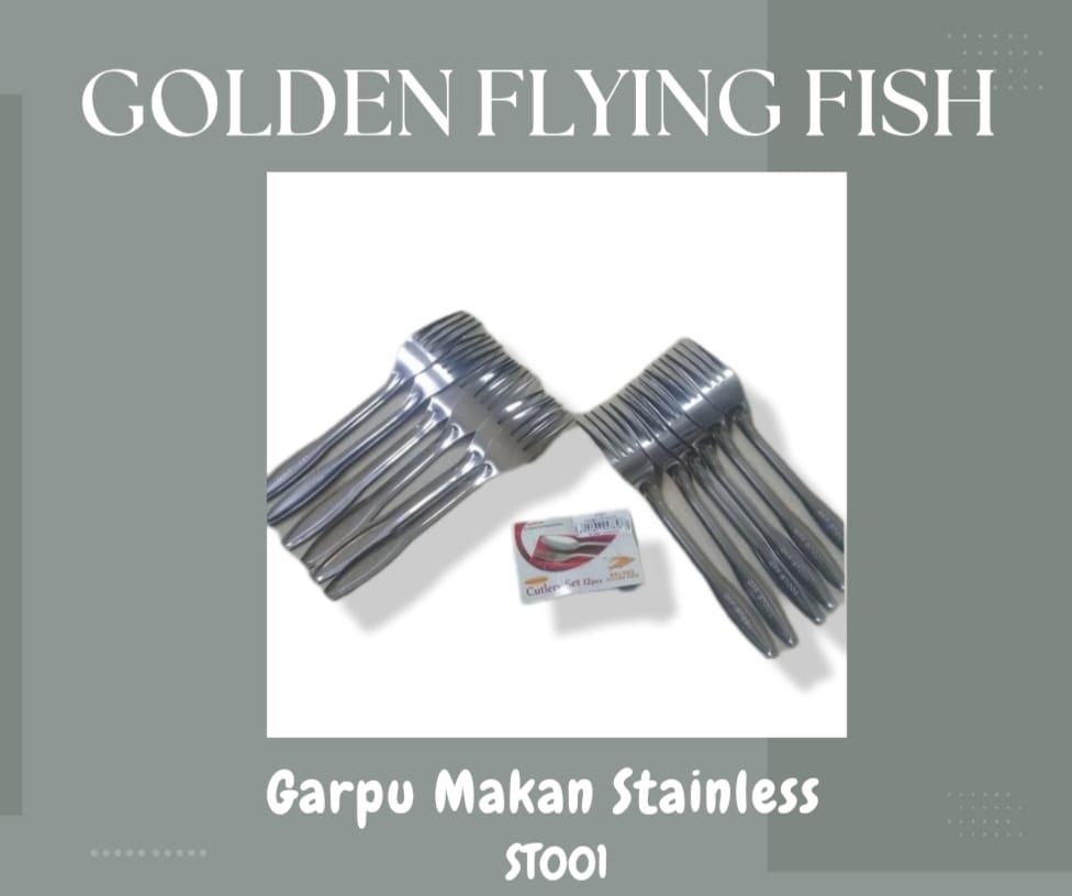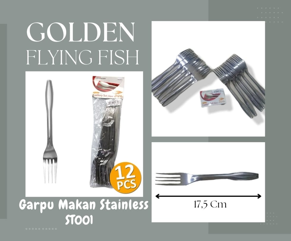 OBRAL GARPU ST001 (1 LUSIN = 12 PCS) - GARPU MAKAN GOLDEN FLYING FISH - GARPU STAINLESS - GARPU TEBAL