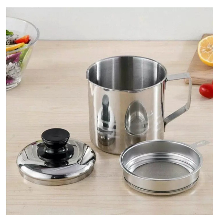 OBRAL OIL POT + SARINGAN (STAINLESS) - WADAH MINYAK BEKAS