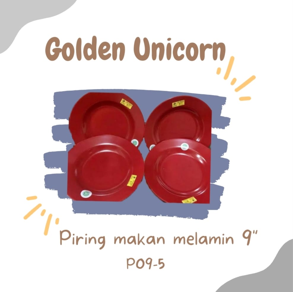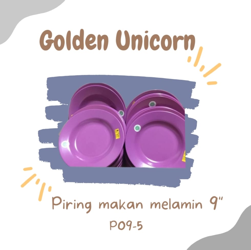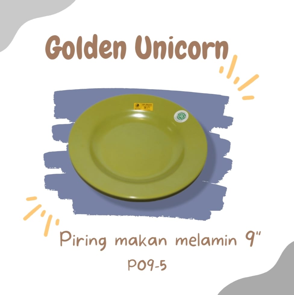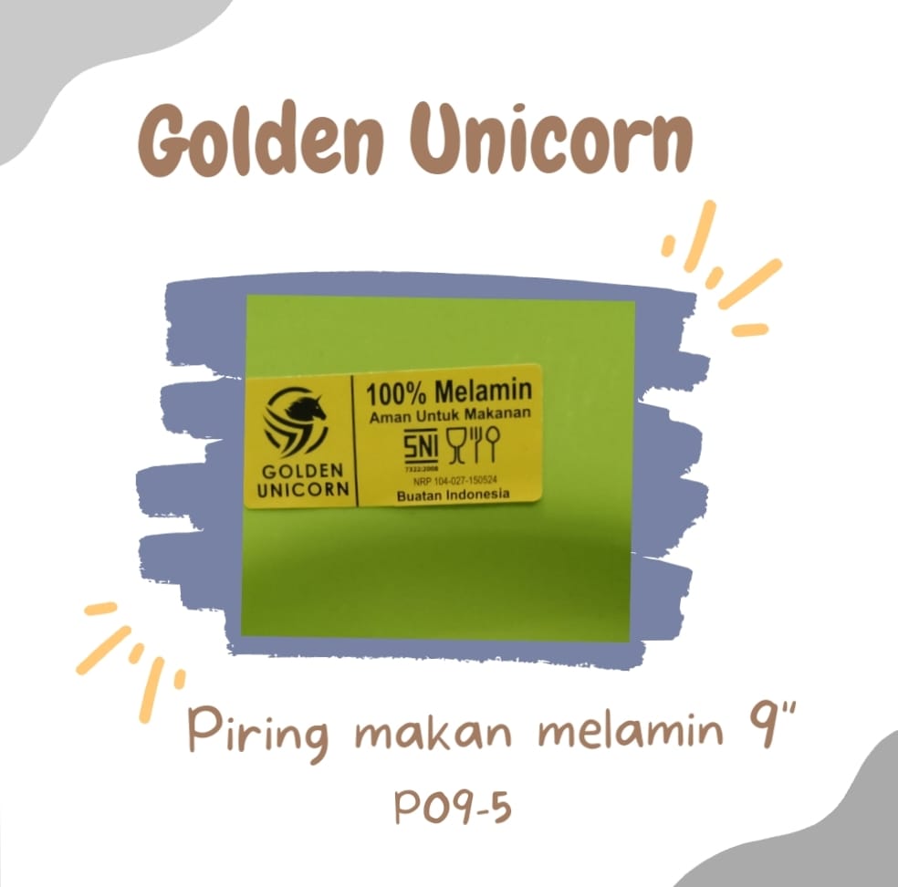 Golden Unicorn P09-5 Piring Makan 9" merupakan piring dengan design bulat warna full color serta cekung yang diproduksi oleh Golden Dragon dari bahan melamine yang berkualitas. Produk melamine ini bersertifikat SNI (Standar Nasional Indonesia) serta sertifikat MUI yang di produksi di Indonesia dengan bahan baku melamine berstandar 100% Food Grade. Sehingga aman untuk menyajikan makanan panas sampai 120 derajat celcius dan dingin sampai minus 20 derajat celcius.
